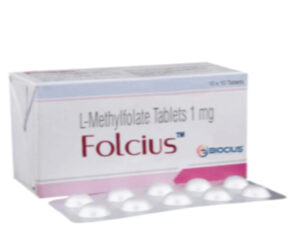 Folcius Tablet contains L-methyl folate, an activated form of folic acid that increases healthy red blood cell production in the body. It carries oxygen throughout the body which helps an adequate amount of haemoglobin to be produced in the body.